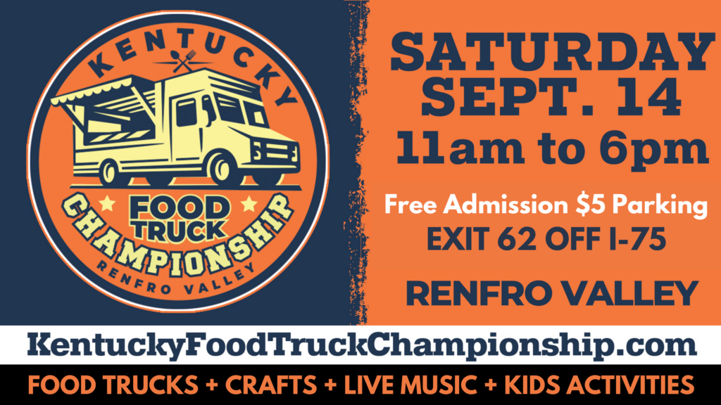 Mark your calendars for our 4th Annual Kentucky Food Truck State Championship in Renfro Valley, Kentucky on September 14, 2024. We will have over 40 Food Trucks, 30 Craft Vendors,